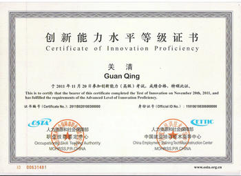 認(rèn)證考試形式:在校學(xué)生參加OSTA《創(chuàng)新能力水平等級(jí)證書(shū)》取證考試,無(wú)需考前按等級(jí)報(bào)名,只要按規(guī)定繳費(fèi)后,即可參加全國(guó)統(tǒng)一命題、統(tǒng)一考務(wù)管理的考試,并根據(jù)合格考生的成績(jī)(標(biāo)準(zhǔn)為:初級(jí)50~69分、中級(jí)70~89分、高級(jí)90分以上),分別由人社部鑒定中心和人社部培訓(xùn)中心聯(lián)合頒發(fā)相應(yīng)級(jí)別(初、中、高級(jí))的OSTA《創(chuàng)新能力水平等級(jí)證書(shū)》。