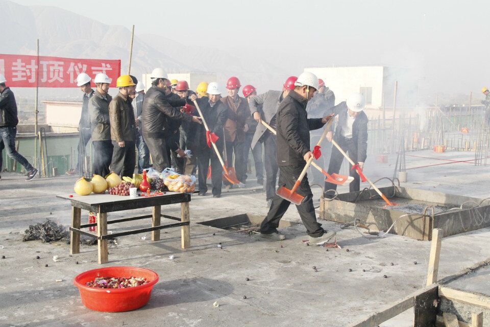 2015年11月15日早上九點(diǎn)十八分,在鞭炮和禮花齊放的轟隆聲中,蘭州市紅古區(qū)平安鎮(zhèn)永安雅居第四標(biāo)段(6/7/8)#樓封頂儀式圓滿落幕。