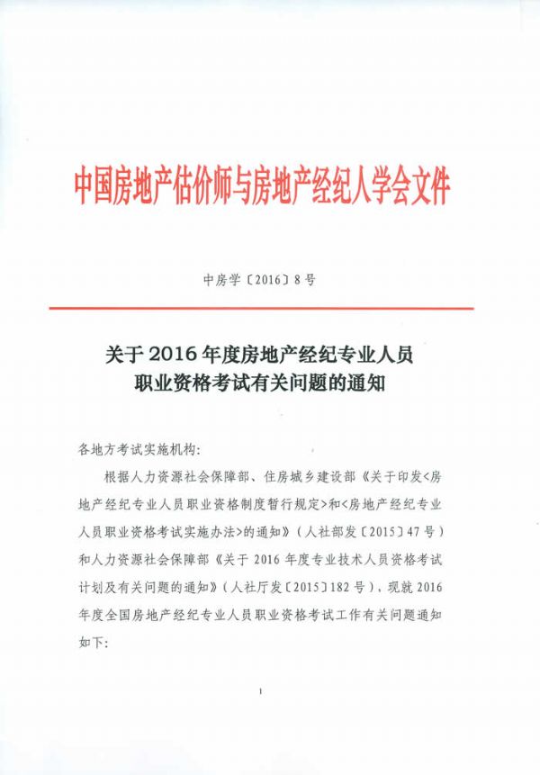 中房學(xué)關(guān)于2016年房地產(chǎn)經(jīng)紀(jì)專業(yè)人員職業(yè)資格考試有關(guān)問題的通知