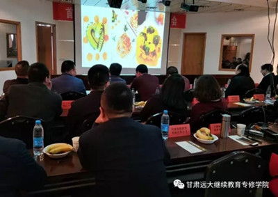 1.甘肅遠大繼續教育專修學院,副院長岳青栓介紹了學院資質,團隊建設,網絡教育,成人高考,學歷類招生具體情況,并介紹了 合作方案。