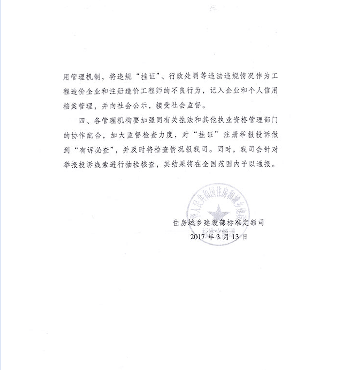 住房城鄉建設部標準定額司關于清理造價工程師違規“掛證”的通知