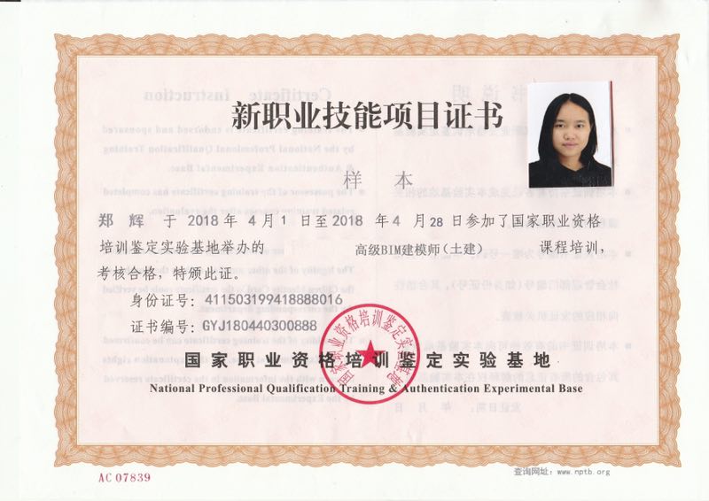 權(quán)威身份認(rèn)可:國家職業(yè)資格培訓(xùn)鑒定實驗基地頒發(fā)“BIM建模師”證書,該證書在國家職業(yè)資格培訓(xùn)鑒定實驗基地網(wǎng)上查詢。