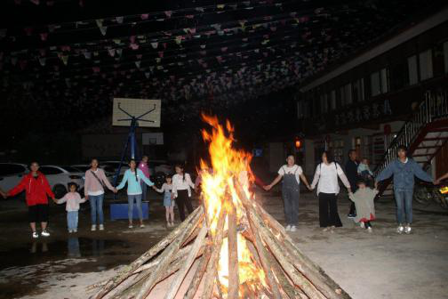 之后,大家去了牛頭寺,牛頭寺,原名任頭山。據(jù)傳,唐代有一農(nóng)家耕牛失圈,連日來四處尋覓無蹤無影,后來在懸崖絕壁的任頭山頂峰找見這頭母牛,并產(chǎn)一牛犢,被人們傳為神牛。于是便在這峰頂之上建起由前殿、后殿、中殿、叁門、伙房組成的寺廟,更名為牛頭寺。牛頭寺歷千載歲月,經(jīng)百代滄桑,幾多崢嶸,幾多輝煌。參觀完牛頭寺,大家去了大草坡農(nóng)家樂,劉愛芳董事長給大家安排了豐盛的晚餐以及篝火晚會,篝火晚會不僅讓大家放松心情,緩解壓力還可以將大家的熱情推至最高點,在篝火氛圍的渲染下,大家唱歌跳舞,放松身心,高興極了。增進了大家的感情。