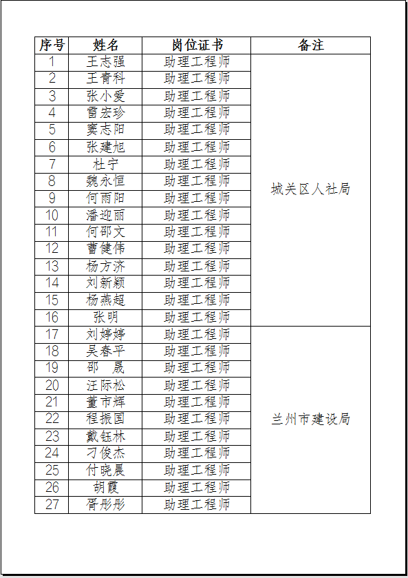 根據(jù)蘭州市職稱改革領(lǐng)導(dǎo)小組辦公室等管理規(guī)定,蘭州市建設(shè)工程專業(yè)中級職稱評審委員會評審,蘭州市住房和城鄉(xiāng)建設(shè)局發(fā)文,甘肅省人力資源服務(wù)有限公司報(bào)送。凡通過評審合格者,獲得初級助理工程師職業(yè)資格證。