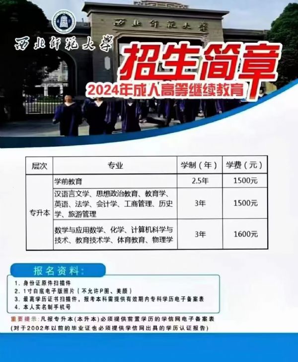 西北師范大學(xué)繼續(xù)教育學(xué)院主要從事全校高等學(xué)歷繼續(xù)教育、 高等教育自學(xué)考試和各類非學(xué)歷教育培訓(xùn)工作。開設(shè)專升本、高起 本、高起專,包括學(xué)前教育、教育技術(shù)學(xué)、漢語言文學(xué)、計(jì)算機(jī)科 學(xué)與技術(shù)、工商管理等25個(gè)專業(yè)。目前,各類在校學(xué)生34000余 人,已形成了較為完善的繼續(xù)教育體系。學(xué)院主動(dòng)適應(yīng)國家戰(zhàn)略和 區(qū)域經(jīng)濟(jì)社會(huì)發(fā)展需要,按照“創(chuàng)新發(fā)展、規(guī)范管理、提升質(zhì)量、 服務(wù)社會(huì)”的指導(dǎo)方針,堅(jiān)持“立足教育行業(yè)、聚焦重點(diǎn)領(lǐng)域、面 向重點(diǎn)人群,扎根西部、服務(wù)全國”的辦學(xué)定位,以不斷滿足社會(huì) 各類人員繼續(xù)教育需求為導(dǎo)向,以學(xué)習(xí)者職業(yè)能力提升為重點(diǎn),培
